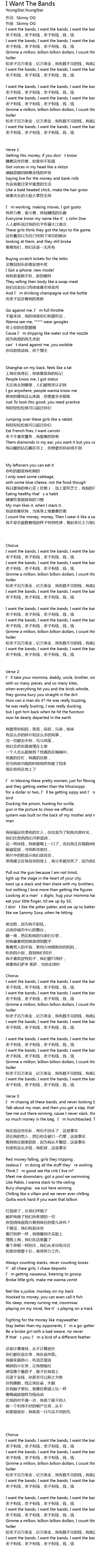 | I want the bands, I want the bands, I want the bands, bands, bands | |
