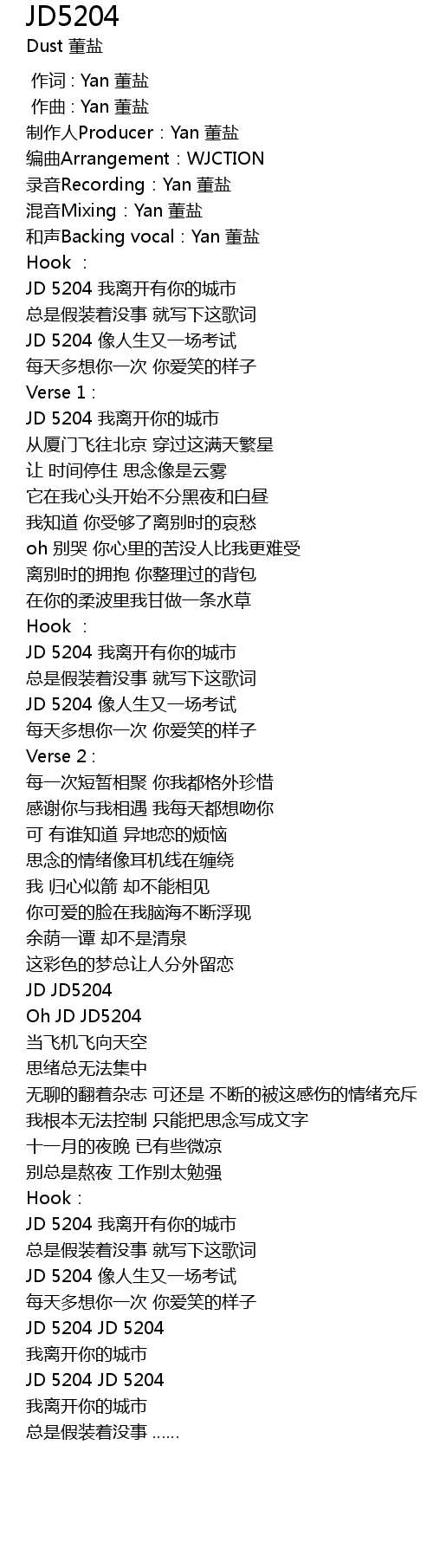 | [00:54.822] | JD 5204 wǒ lí kāi nǐ de chéng shì |
