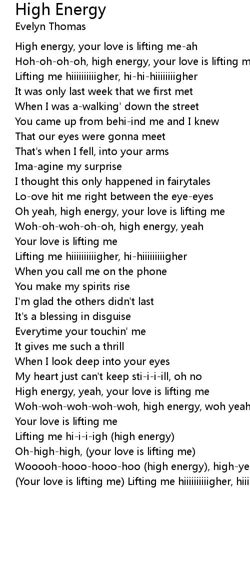 Hoh-oh-oh-oh, high energy, your love is lifting me |