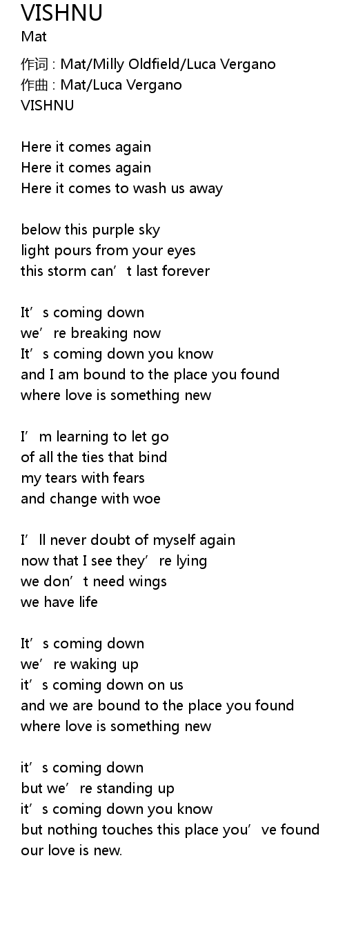 | 作词 : Mat/Milly Oldfield/Luca Vergano | |