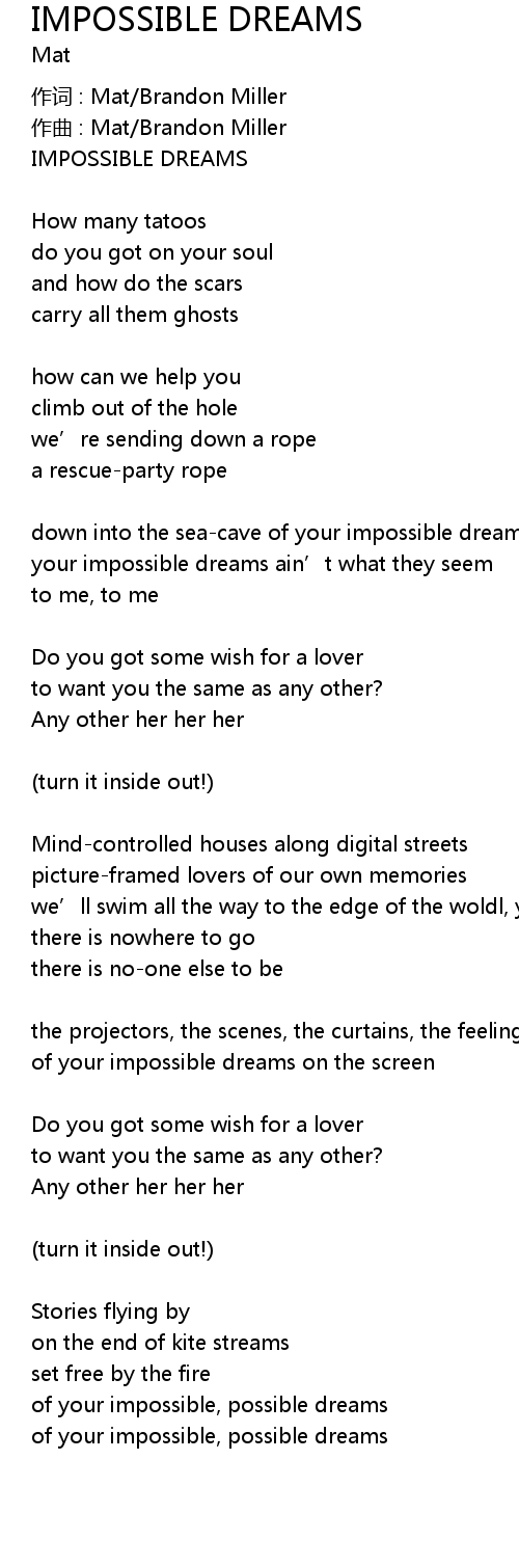 | your impossible dreams ain' t what they seem | |