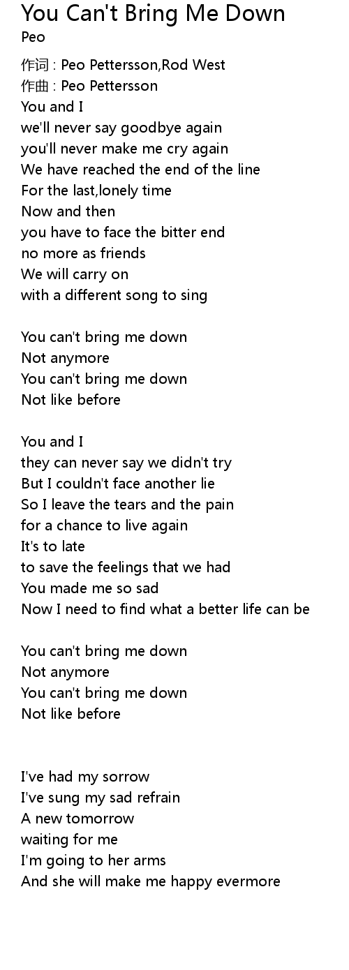 | You can' t bring me down | |