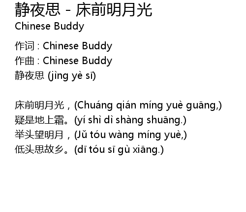 | chuang qian ming yue guang, Chua ng qia n mi ng yue gua ng, | |