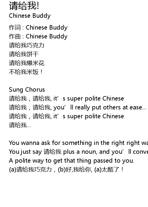 | qǐng gěi wǒ, qǐng gěi wǒ, it' s super polite Chinese | |