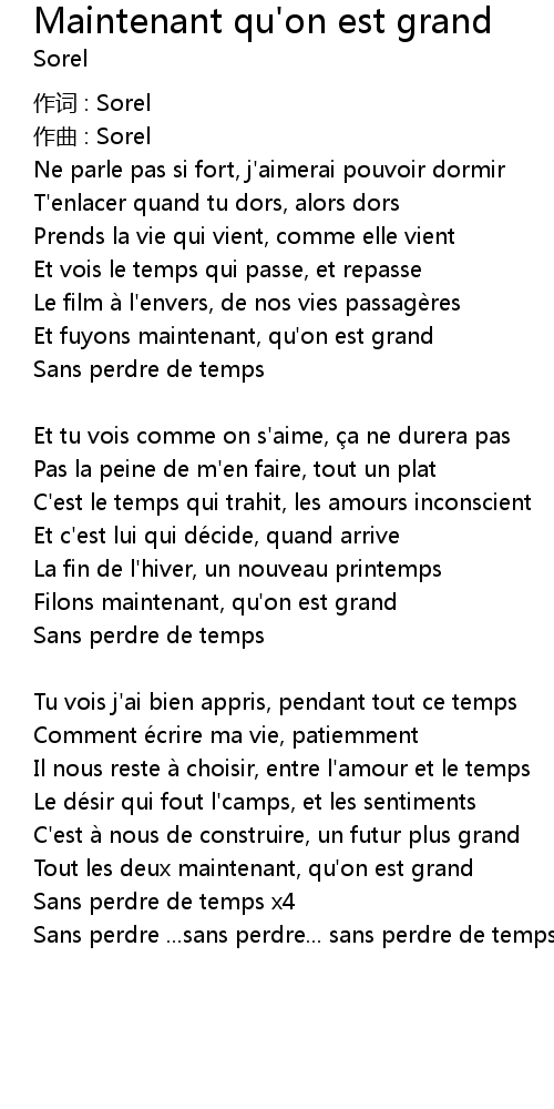 | Il nous reste a choisir, entre l' amour et le temps | |