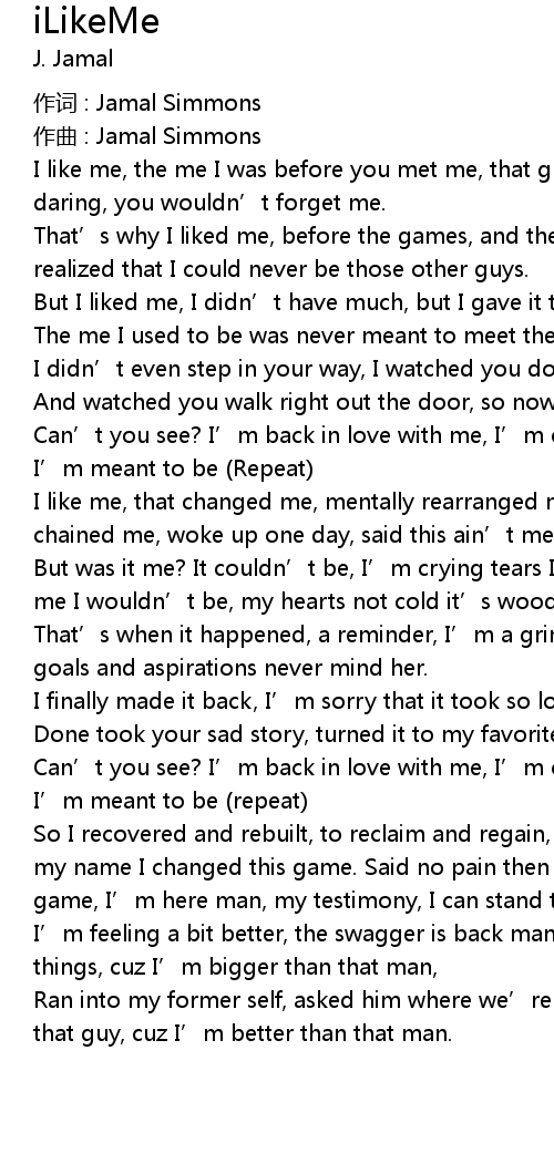 | Can' t you see? I' m back in love with me, I' m oh so proud of me, I' m who I' m meant to be Repeat | |