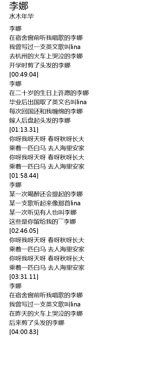 | [02:30.84] | 某一支歌听起来像那首lina |