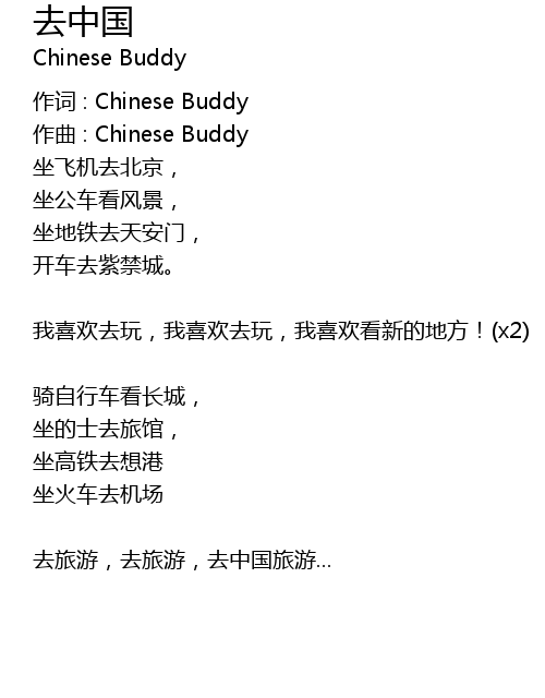 | qu lv you, qu lv you, qu zhong guo lv you... |
