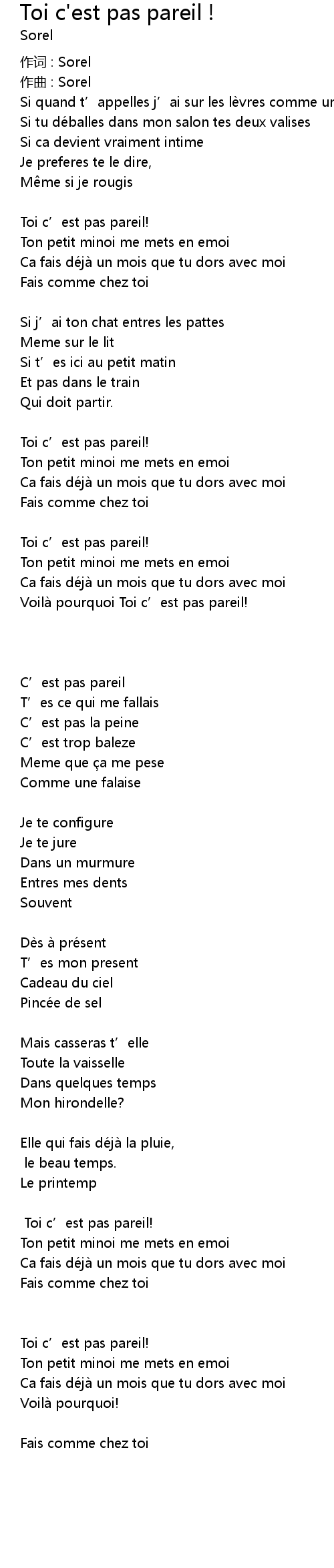| Voilà pourquoi Toi c' est pas pareil! | |