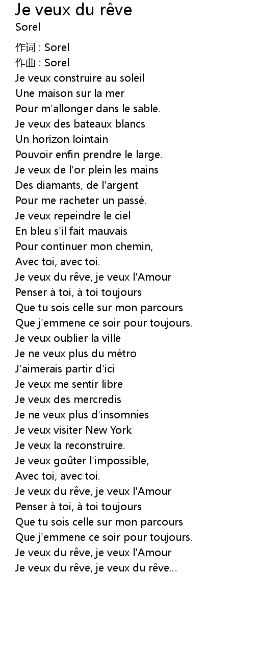 | Je veux du r ve, je veux du r ve |