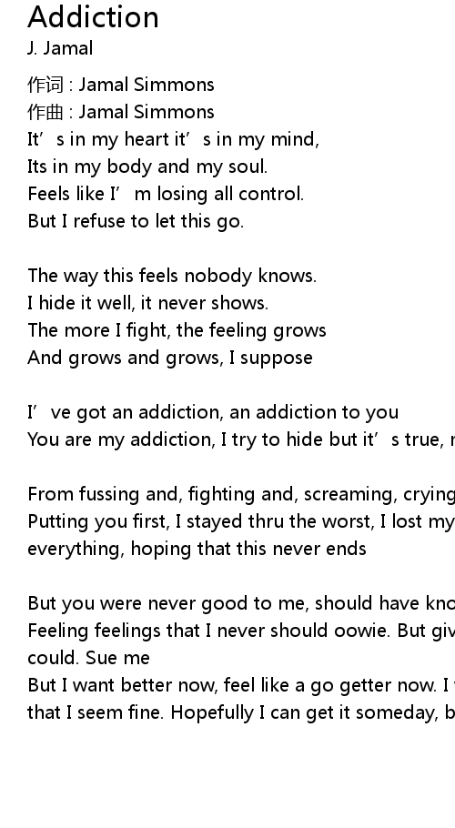 | You are my addiction, I try to hide but it' s true, my addiction is you | |