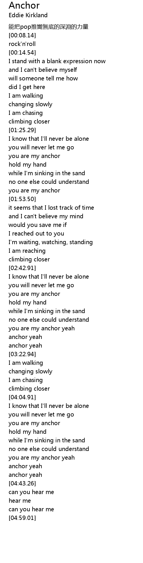 | [04:14.68] | you are my anchor |