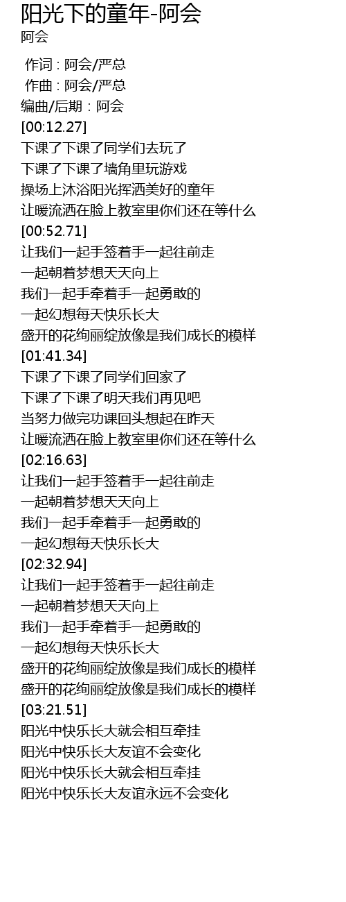 | [03:34.12] | 阳光中快乐长大友谊永远不会变化 |