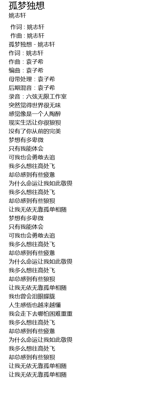 | [00:25.403] | 孤梦独想-姚志轩 |