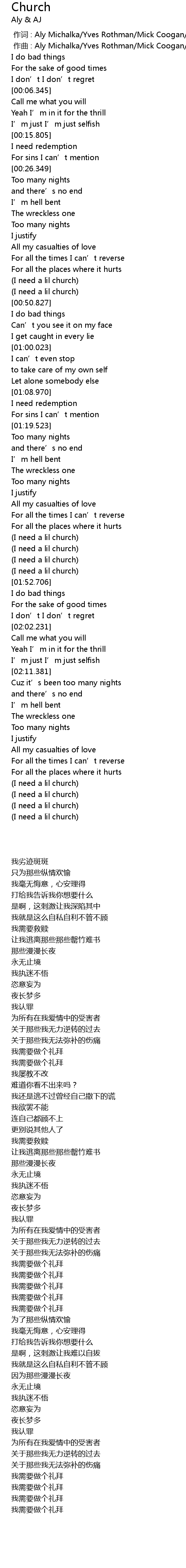 | [01:41.571] | (I need a lil church) |