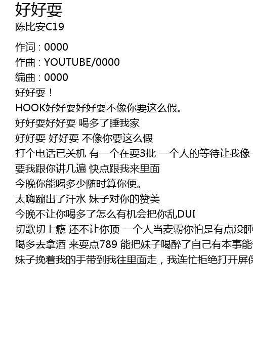 | HOOK hǎo hǎo shuǎ hǎo hǎo shuǎ bù xiàng nǐ yào zhè me jiǎ. | |