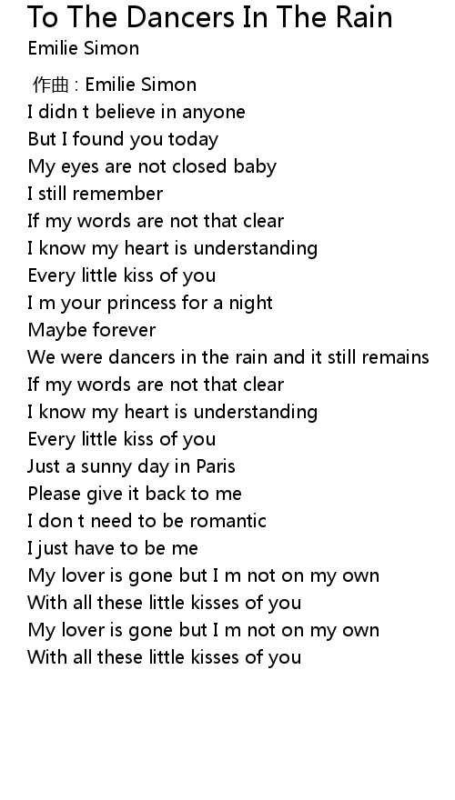 | [00:55.69] | We were dancers in the rain and it still remains |