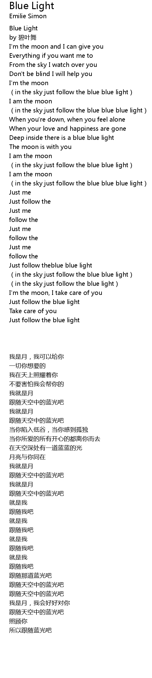 | [01:32.33] | (in the sky just follow the blue blue light) |