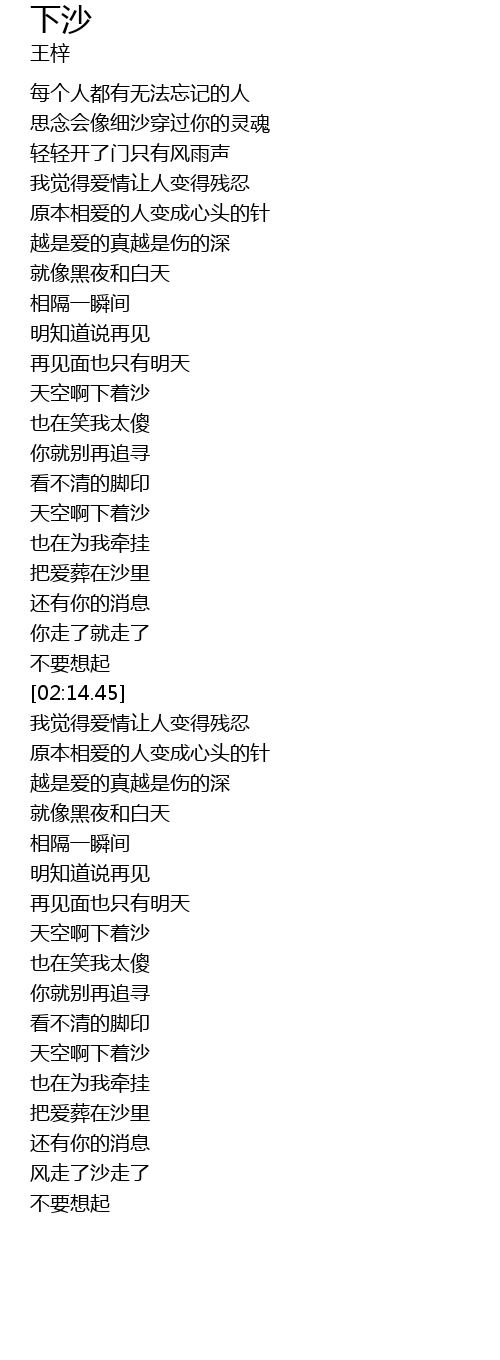 | [01:58.43] | 把爱葬在沙里 |