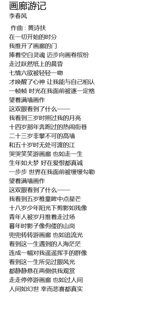 | [03:52.906] | 走走停停游画廊 也如过人间 |