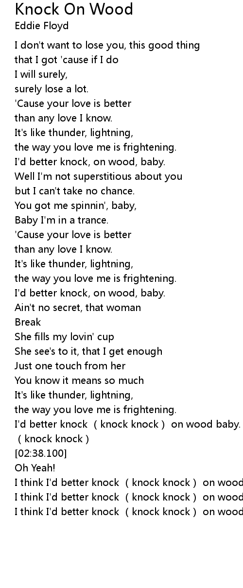 | [02:50.440] | I think I'd better knock (knock knock) on wood |