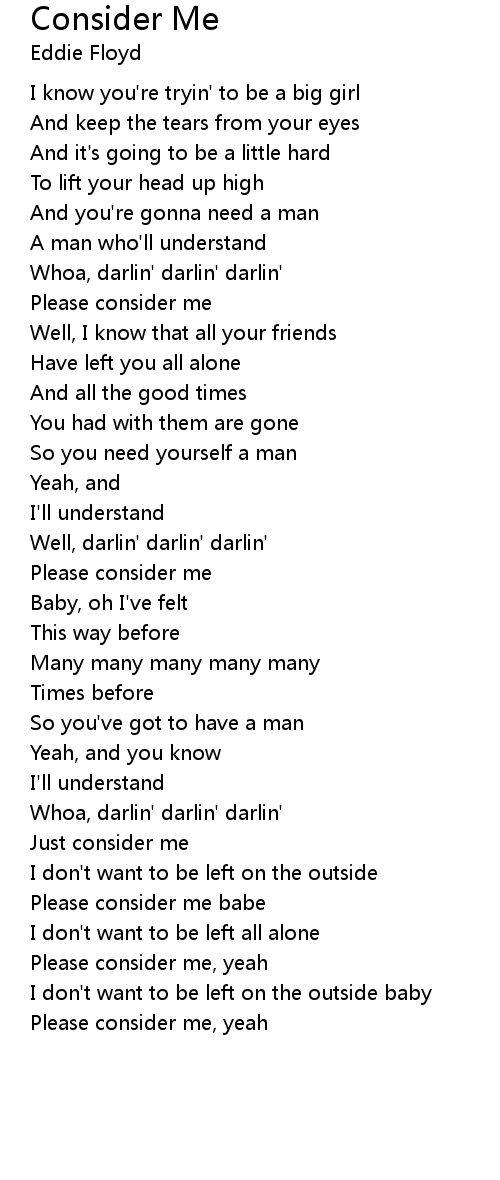 Please consider me, yeah |