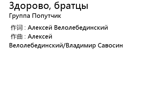| [00:00.000] | 作曲 : Алексей Bелолебединский/Владимир Савосин |