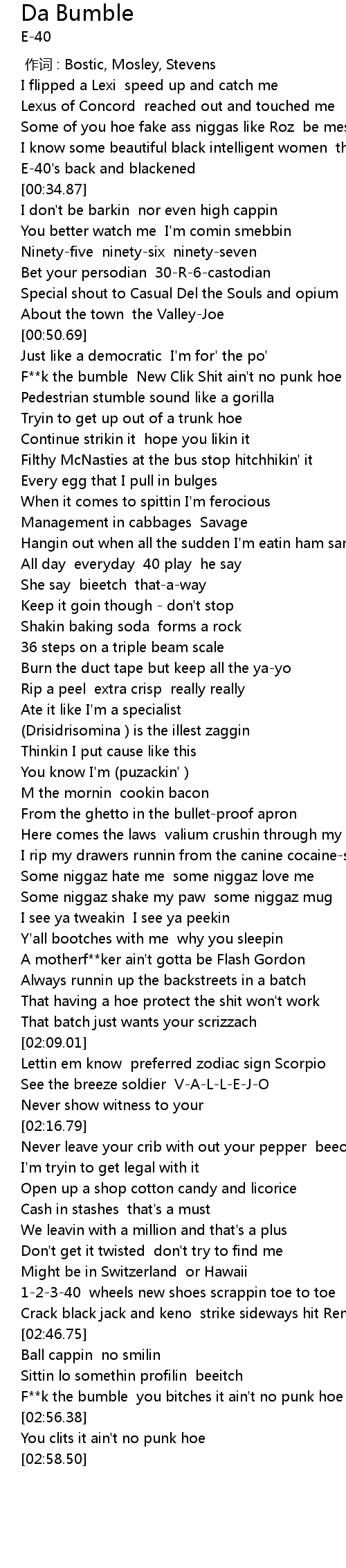 | [02:53.18] | F**k the bumble you bitches it ain't no punk hoe |