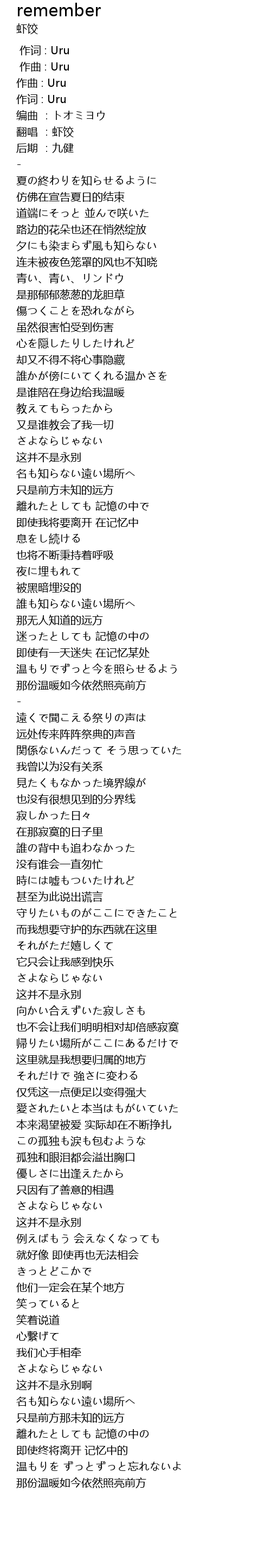 | Album | remember(剧场版《夏目友人帐: 缘结空蝉》主题曲) |