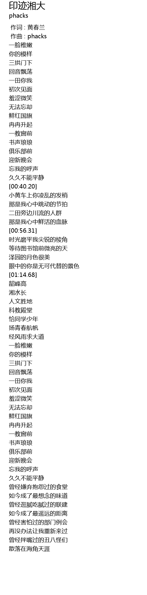 | [01:33.82] | 恰同学少年 |