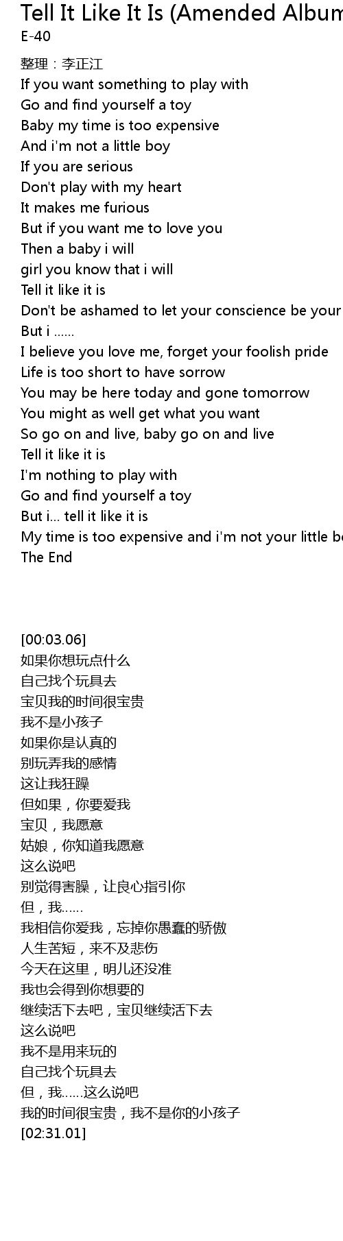 | [02:19.56] | But i... tell it like it is |