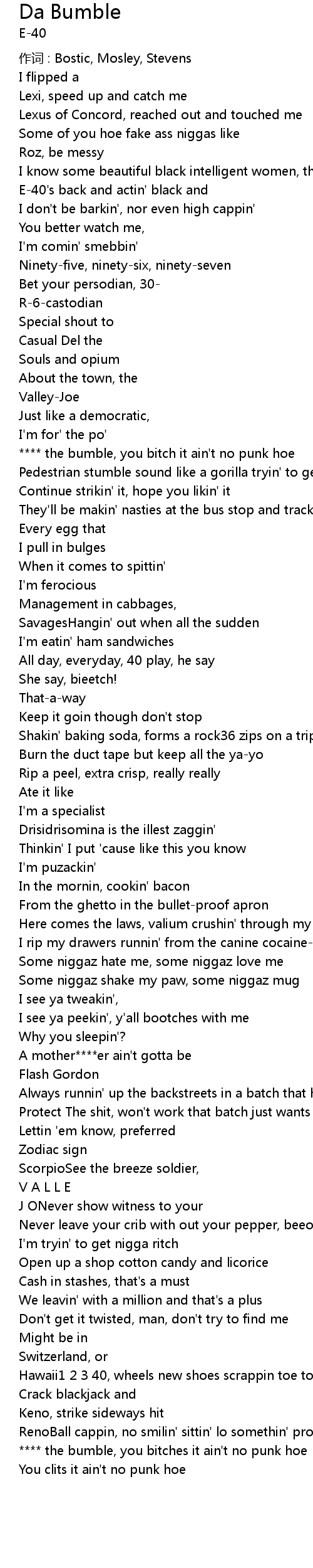 | **** the bumble, you bitch it ain't no punk hoe | |