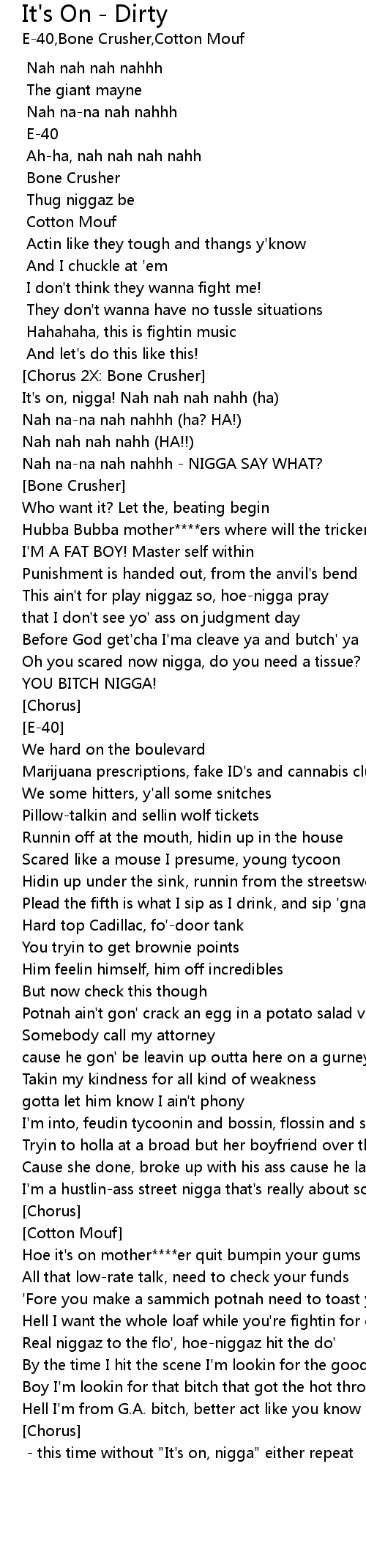 [Chorus] - this time without "It's on, nigga" either repeat |