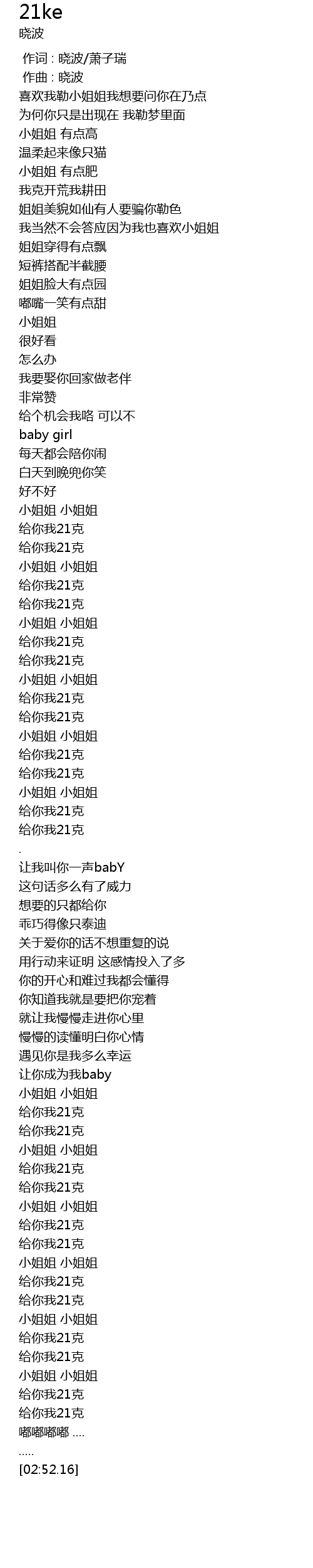 | [02:41.24] | gěi nǐ wǒ 21 kè |