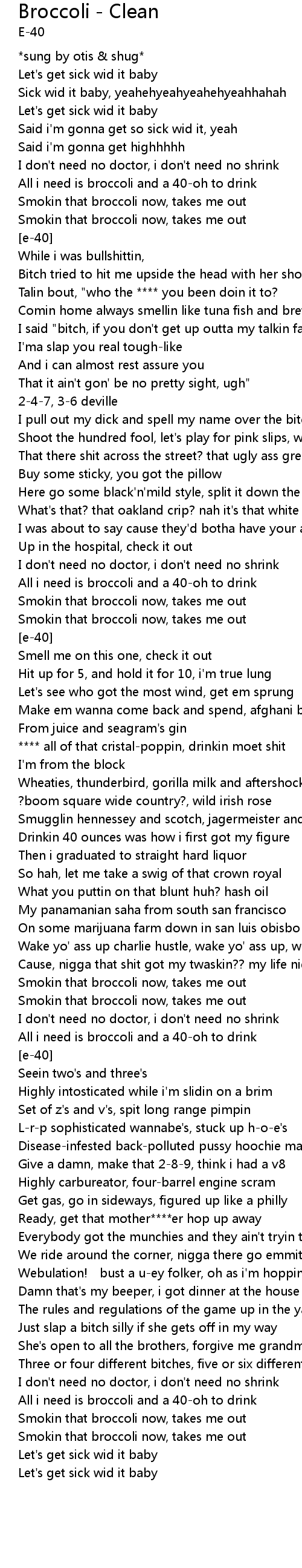 | All i need is broccoli and a 40-oh to drink | |