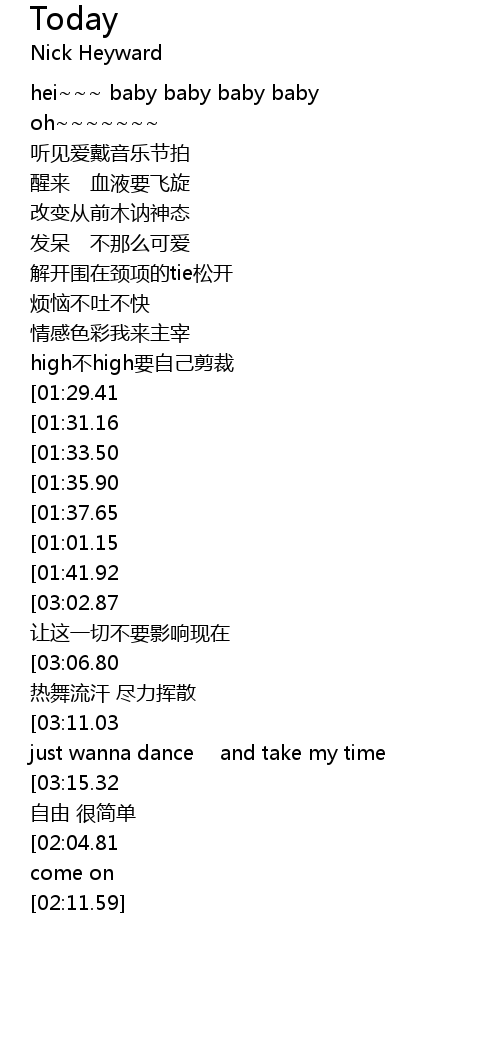 | [03:27.97][03:11.03][02:53.72][01:54.55][01:18.46] | ming tian sun will shine Cause I just wanna dance and take my time |
