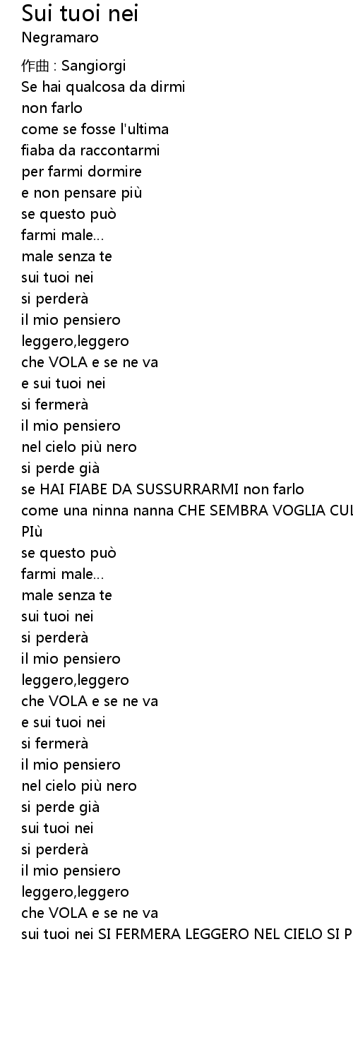 | sui tuoi nei SI FERMERA LEGGERO NEL CIELO SI PERDE E SE NE VA |