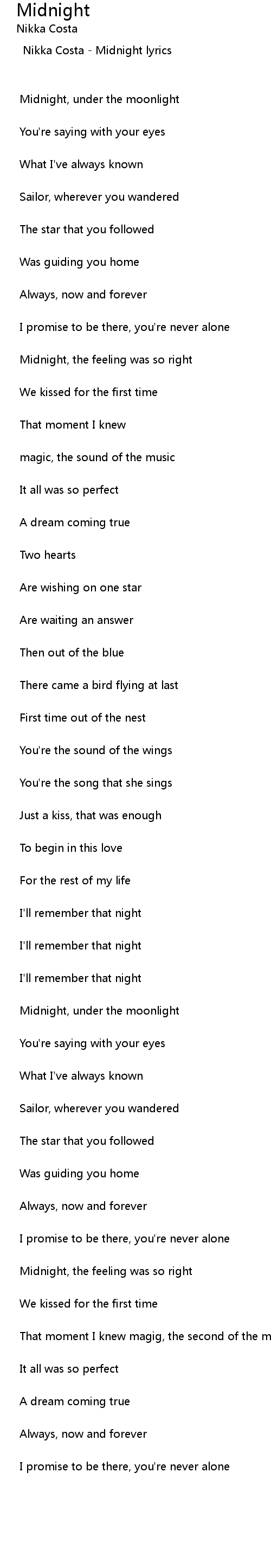 Nikka Costa - Midnight lyrics |