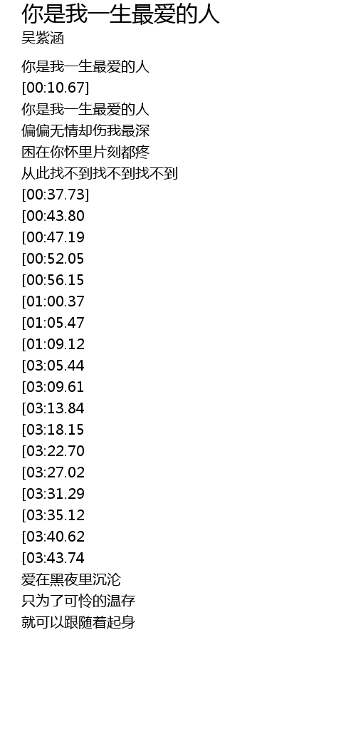 | [04:19.15][03:22.70][01:34.32] | 你是我一生最爱的人 |