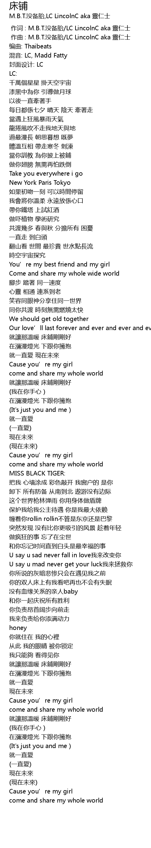 | [00:00.000] | 作词 : M.B.T.没备胎/LC LincolnC aka 靈仁士 |