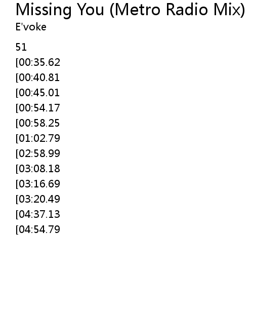 | Song | Missing You (Metro Radio Mix) |
