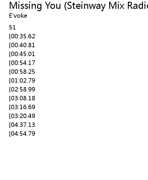 | Song | Missing You (Steinway Mix Radio Edit) |