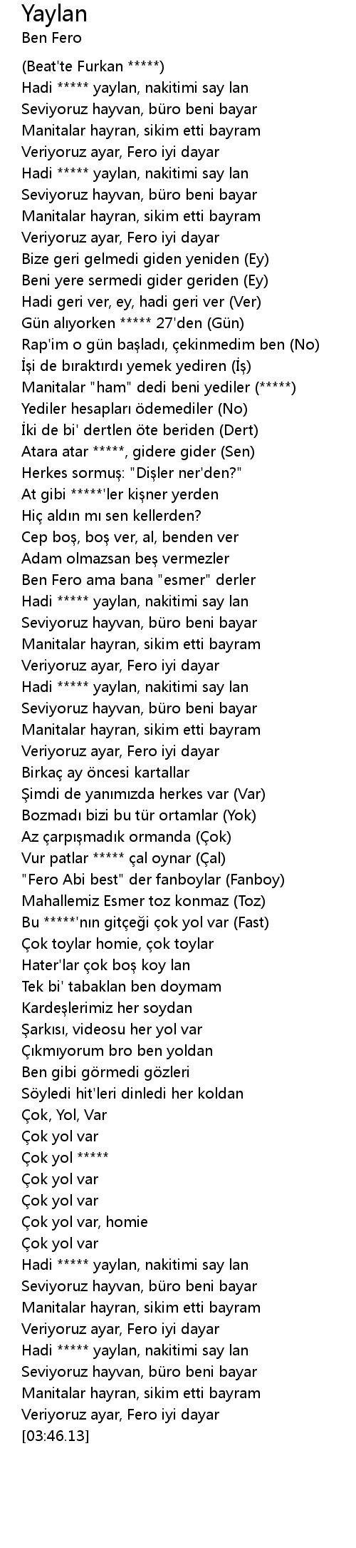 | [02:35.02] | Vur patlar ***** çal oynar (Çal) |