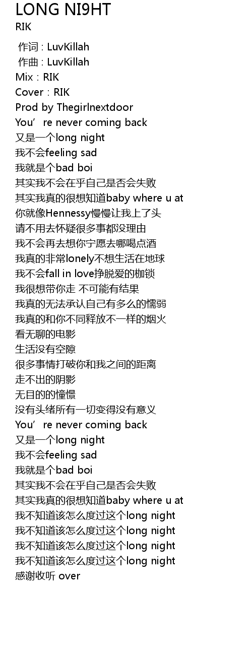 | [01:19.399] | 又是一个long night |