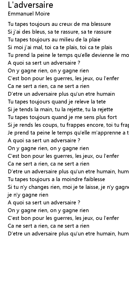 L'adversaire Lyrics