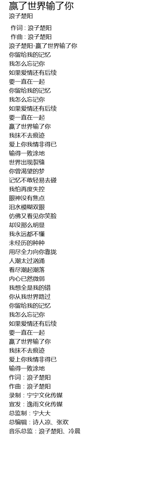 | [00:00.00] | 浪子楚阳-赢了世界输了你 |