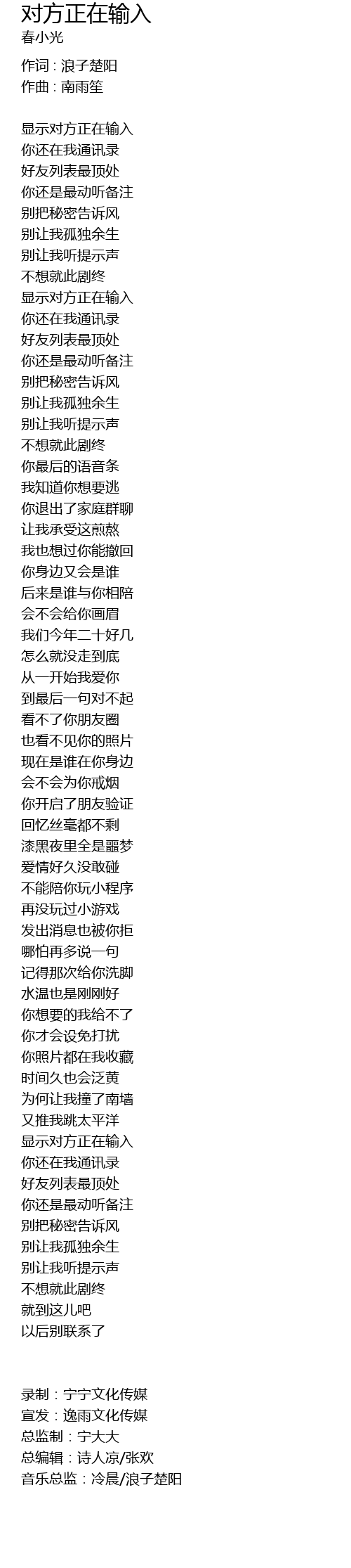 | 作词 : 浪子楚阳 | |