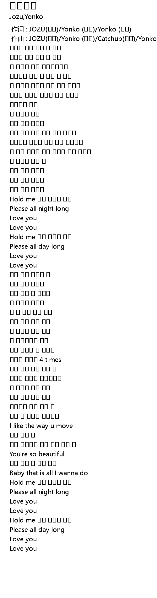 | [02:33.01] | Hold me 함께 있어줘 밤새 |