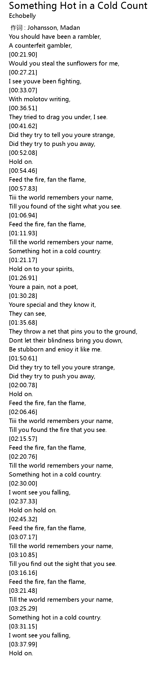 | [03:25.84] | Something hot in a cold country. |