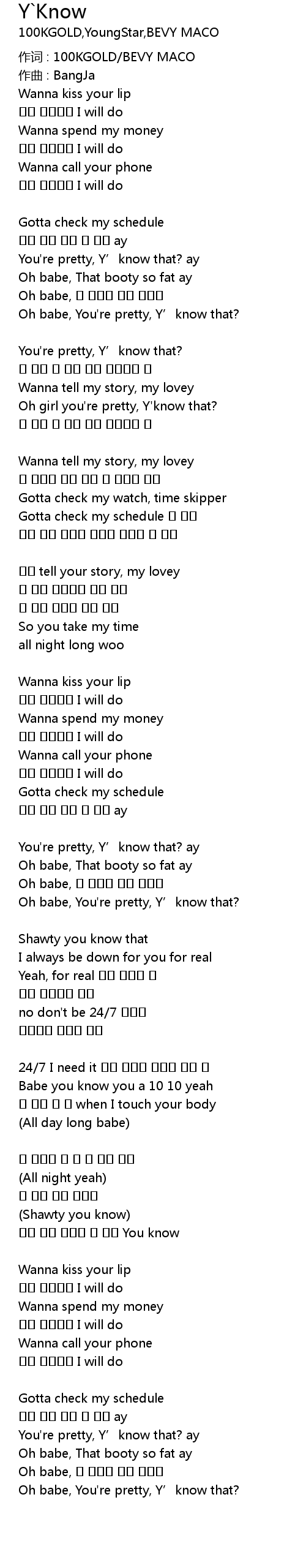 | 作词 : 100KGOLD/BEVY MACO | |